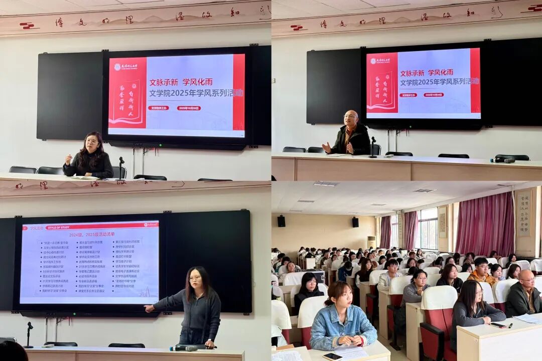 据悉,该项目贯穿学院2个专业3个年级24个班级,将自选主题和指定项目相结合,在高年级学生亟需升学提升就业能力、低年级学生需要提高专业学习能力的背景下,结合不同年级发展需求设计个性化内容。2023级聚焦升学就业能力培养,围绕考研、考编、面试等开展专项活动;2024级、2025级以学术培育为核心,充分发挥学生们在项目策划、实施过程中的主观能动性,以“经典阅读与人文素养提升”“学术写作与表达能力训练”等主题夯实学风建设基础。同时,明确构建“指导老师—学生会办公室—班级实施小组”三元联动推进机制,并配套完善的激励保障措施,调动学生参与积极性,确保全员在实践中收获成长。下一步,文学院将以本次活动为起点,推动学风建设举措落地见效,着力打造充满书香、活力与正气的育人环境,让优良学风成为学生青春成长的坚实底色与学院发展的亮丽名片。